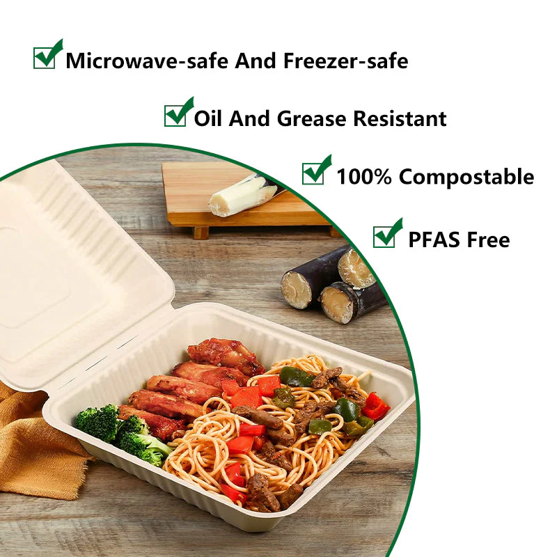 10″x10″x3″ Compostable Clamshell Containers PFAS Free 200 pcs