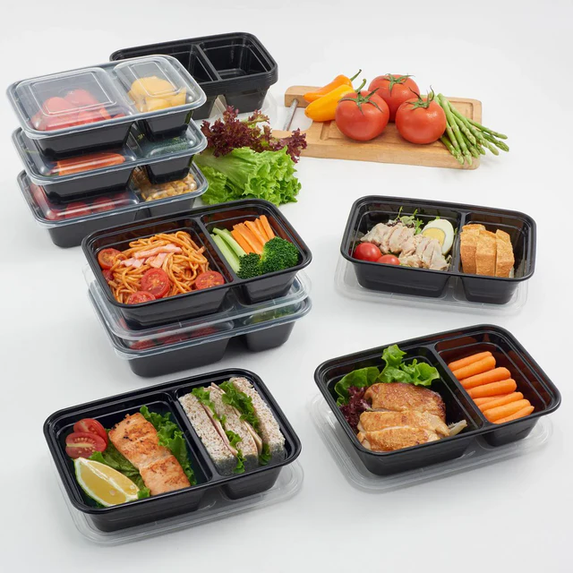 These to-go food containers are made from polypropylene. They’re BPA free and are very safe for hot or cold food packaging. They’re microwavable, stackable, refrigerator-friendly and dishwasher safe. They are great in both appearance and performance.